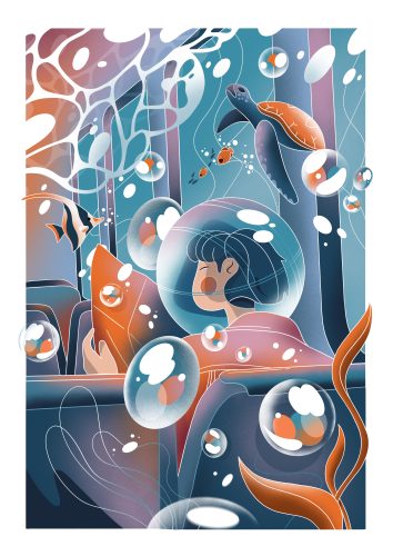 Et pourtant, elle en a fait une réalité. Aujourd’hui, elle crée pour des clients dont l’univers la transporte. Elle aime que ses illustrations fassent voyager, qu’elles racontent des histoires, qu’elles provoquent des émotions.