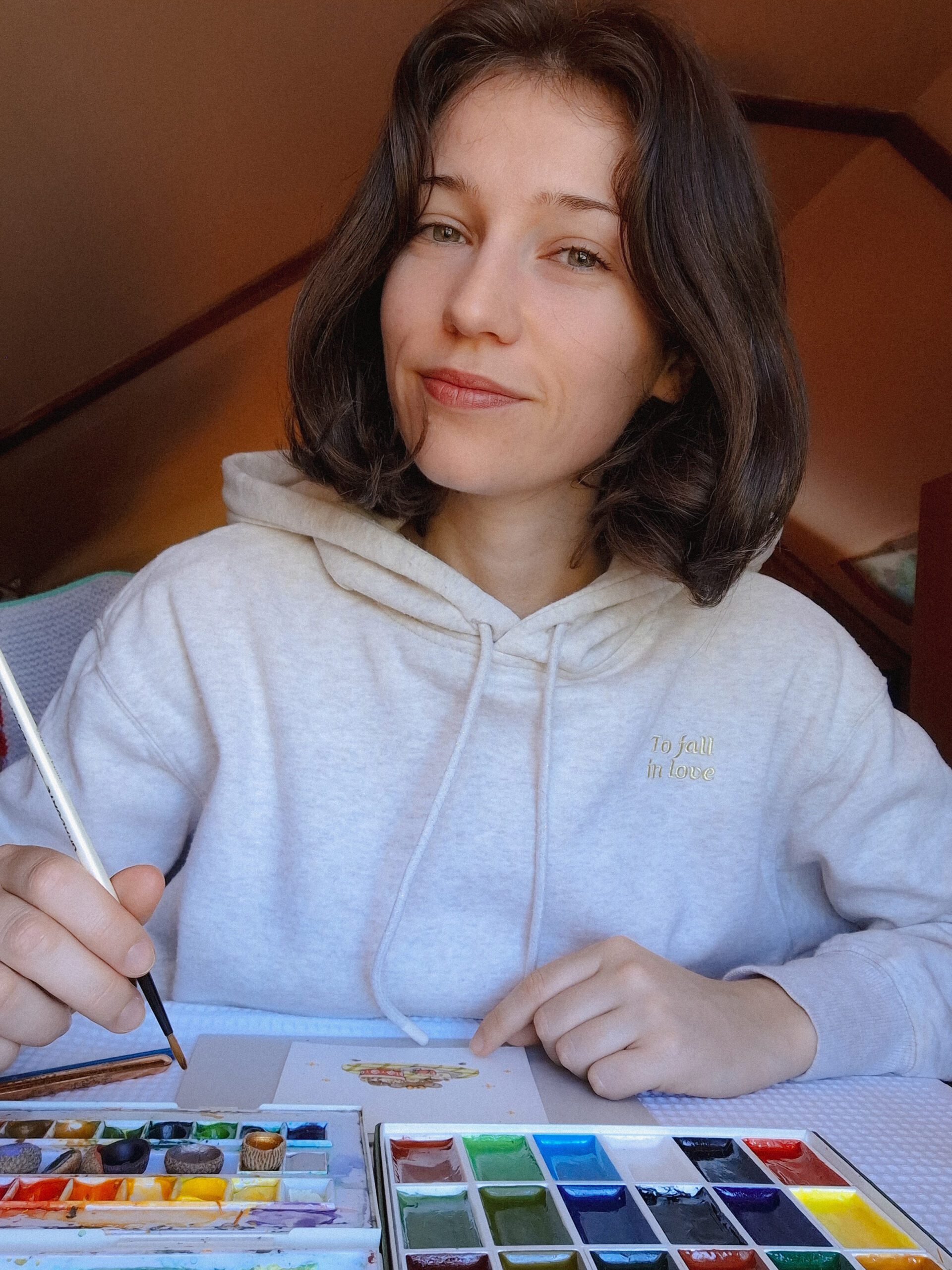 Elle puise son inspiration dans le quotidien et les souvenirs chaleureux, de cela en découle des scènes réconfortantes remplies de détails. Dans certaines de ses illustrations, Lisa imagine également des mondes magiques où les animaux vivent en société, comme un café-librairie pour chats ou un concert de grenouilles au bord d’un étang. Elle crée rarement un tableau sans chat ! Les scènes représentées dans ses illustrations ont pour but de procurer des émotions positives, apportant douceur et apaisement.