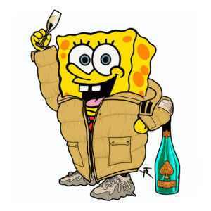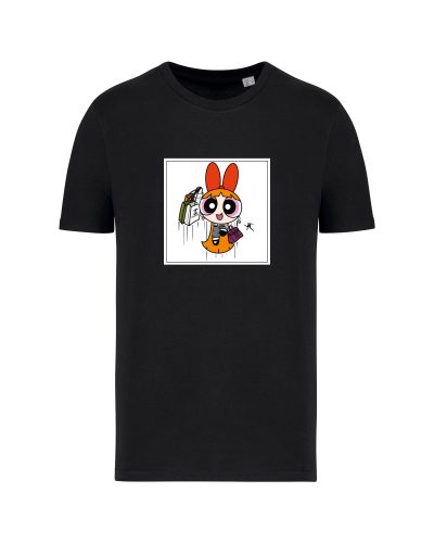 Son style ? Un mélange audacieux d’art urbain, d’influences rétro, de culture RAP et de liberté visuelle, à découvrir sur textile comme sur toile.