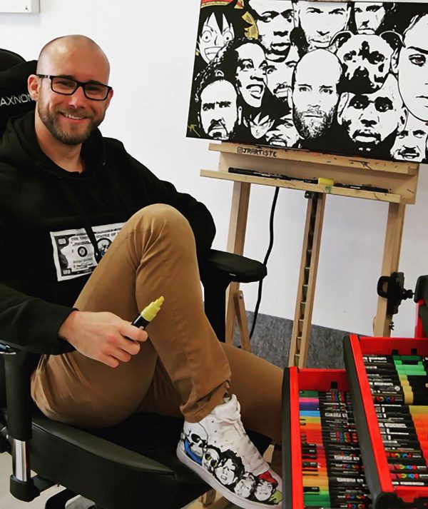 Julien Raud est un artiste street art breton qui façonne son univers entre custom textile, culture urbaine et art graphique. Cet autodidacte passionné s’illustre notamment par la personnalisation de vêtements, de baskets et d’objets du quotidien, auxquels il insuffle une identité forte, colorée et résolument urbaine. Mais son talent ne s’arrête pas au textile : Julien graffe également ses propres toiles, toujours dans une veine street-art libre et inspirée de l’univers RAP.